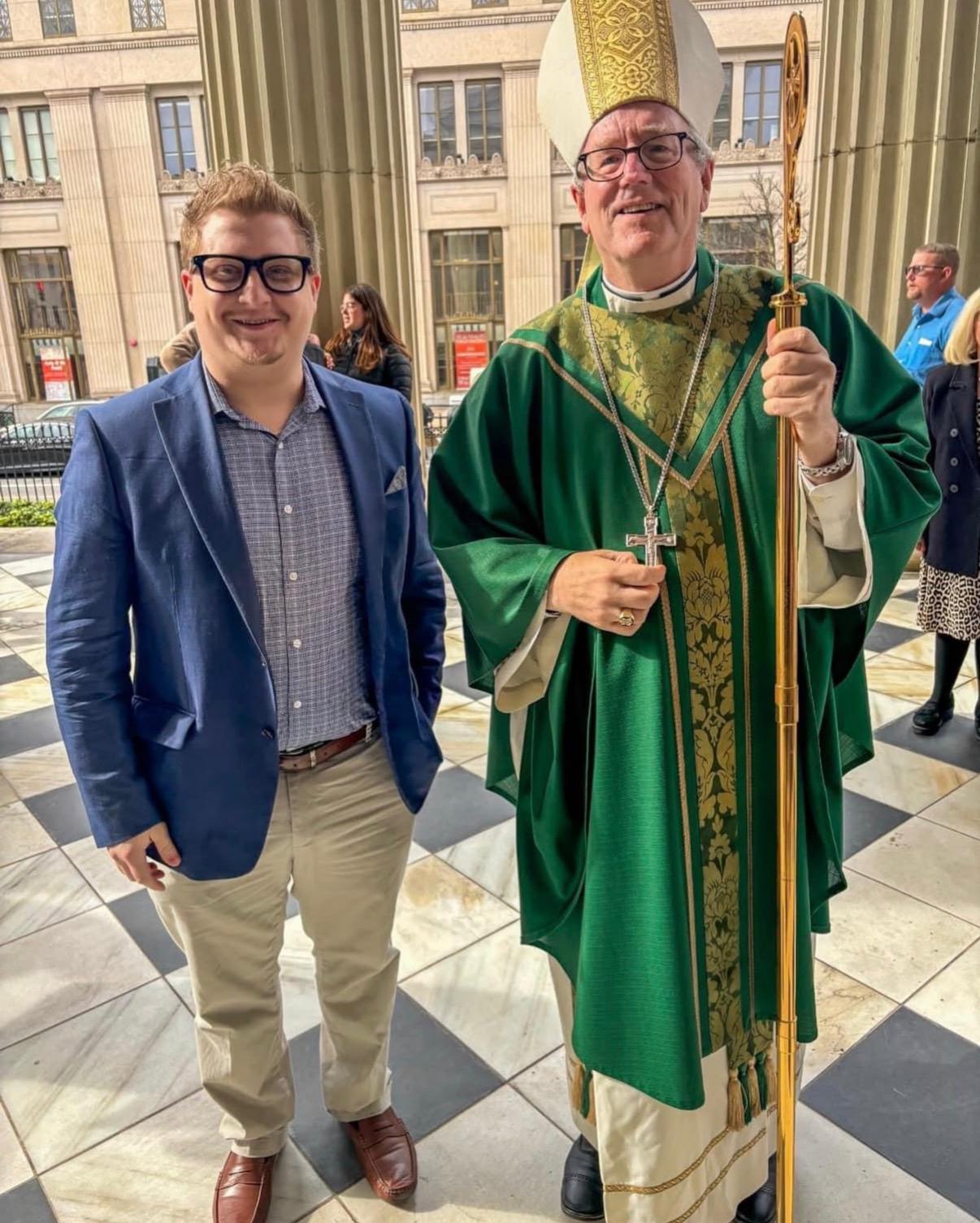 Andrew is a dedicated parishioner at the Basilica of the National Shrine of the Assumption of the Blessed Virgin Mary—America's First Cathedral—where he worked with the rector to obtain first-class relics of Pope Saint John Paul II from Rome and Saint Mother Teresa of Calcutta from the Missionaries of Charity, for the Basilica's perpetual adoration chapel and its street-mission program, Source of All Hope. He previously served as an altar server, lector, and member of the polyphony and Gregorian chant schola cantorum, and has also sung with the Gregorian chant schola at the National Shrine of St. Alphonsus.
